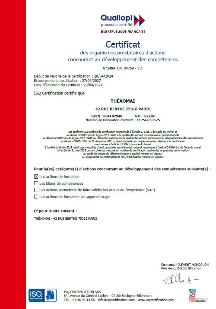 Organisme de formation certifié Qualiopi pour les actions de formation, partenaire de France Travail. Nous accompagnons les entreprises des secteurs accueil, sécurité et événementiel dans le recrutement et la montée en compétences.